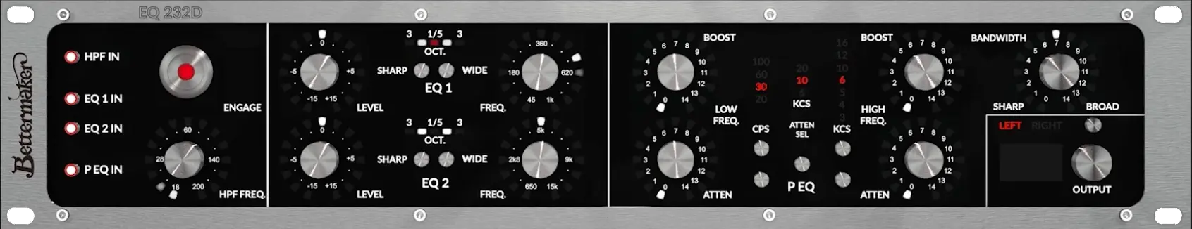 égaliseur 5 bandes classe A, 3 bandes paramétriques, bandes LO et HI commutables en filtres résonnants, baxandall ou paramétriques, une fonction warm pour adoucir l’aigu. À écouter absolument !!!